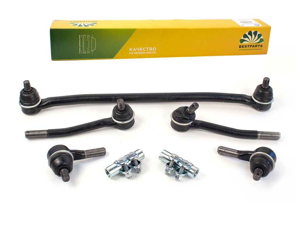 - металлические хомуты соединительные в сборе с 2 штуками болтов и 2 штуками гаек - 2 комплекта. Рулевая трапеция является достаточно сложным единым механическим узлом. Её ключевое назначение состоит в том, чтобы обеспечивать движение колёс, когда ТС выполняет манёвры (в частности, повороты) без бокового скольжения. Кроме того, с технической стороны она решает проблему надёжного крепления деталей друг к другу, что делает механизм более прочным и износоустойчивым и будет дольше служить. Материал изделия: Корпуса тяг (сталь); шаровые пальцы (сталь); пружины вкладыша (сталь пружинная); вкладыши (полимер); опорные шайбы пружины (сталь); уплотнительные кольца чехлов (сталь пружинная); обоймы чехлов (сталь); чехлы (резина). Состав смазки изделия: Литол-24. Тип двигателя ТС: Бензиновый ДВС. Сторона, место установки: Рулевое управление автомобиля. Температурный режим эксплуатации: от -40 до 45°C. Гарантийный срок эксплуатации: 2 года с момента установки на автомобиль или 40 000 км пробега. Произведено на заводском технологичном и современном оборудовании в России. Продукция имеет Протокол испытания, Сертификат качества, соответсвует требованиям Технического регламента Таможенного союза ТР ТС 018/ 2011.